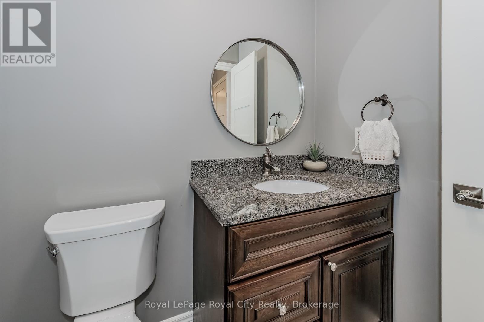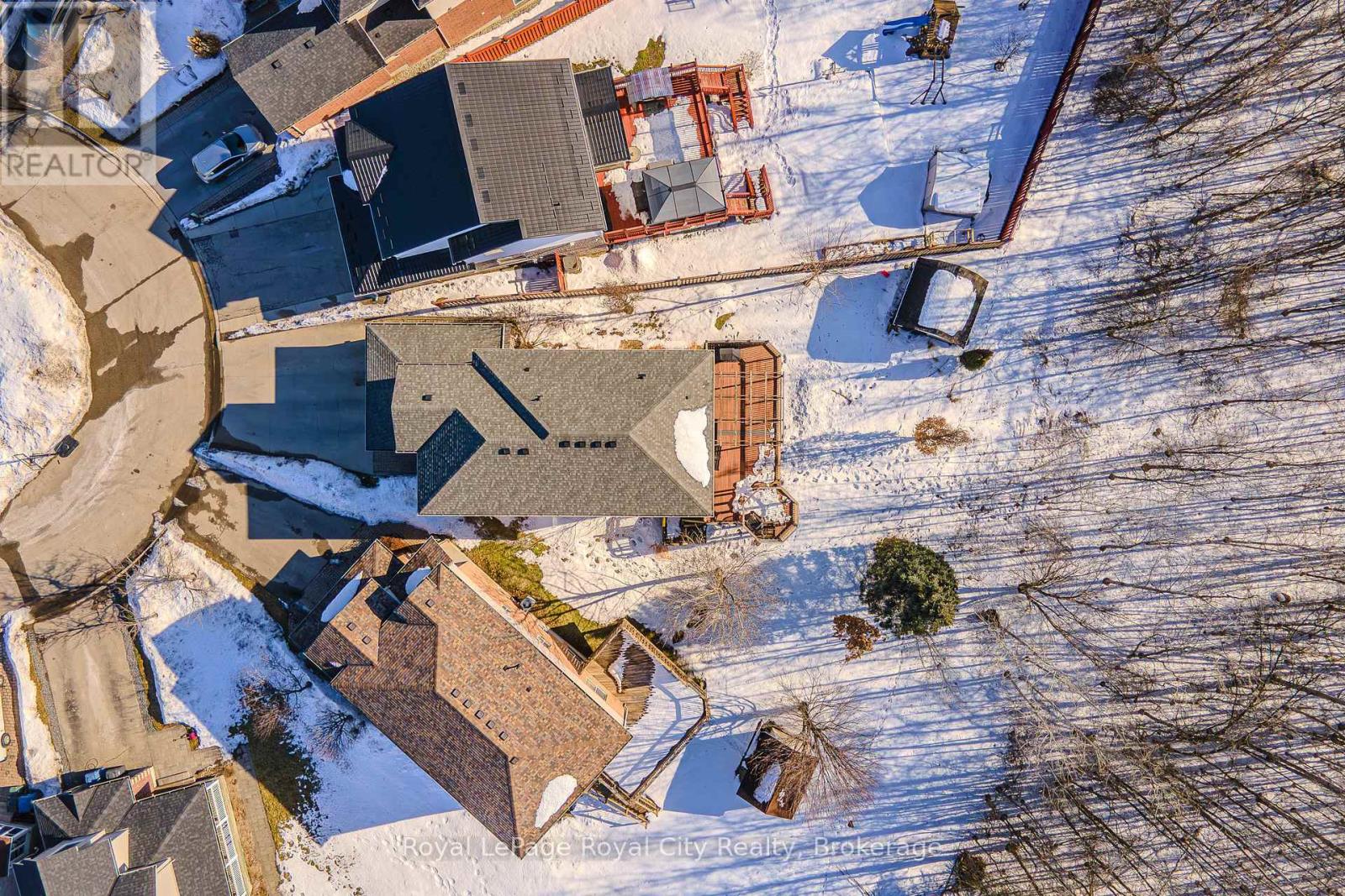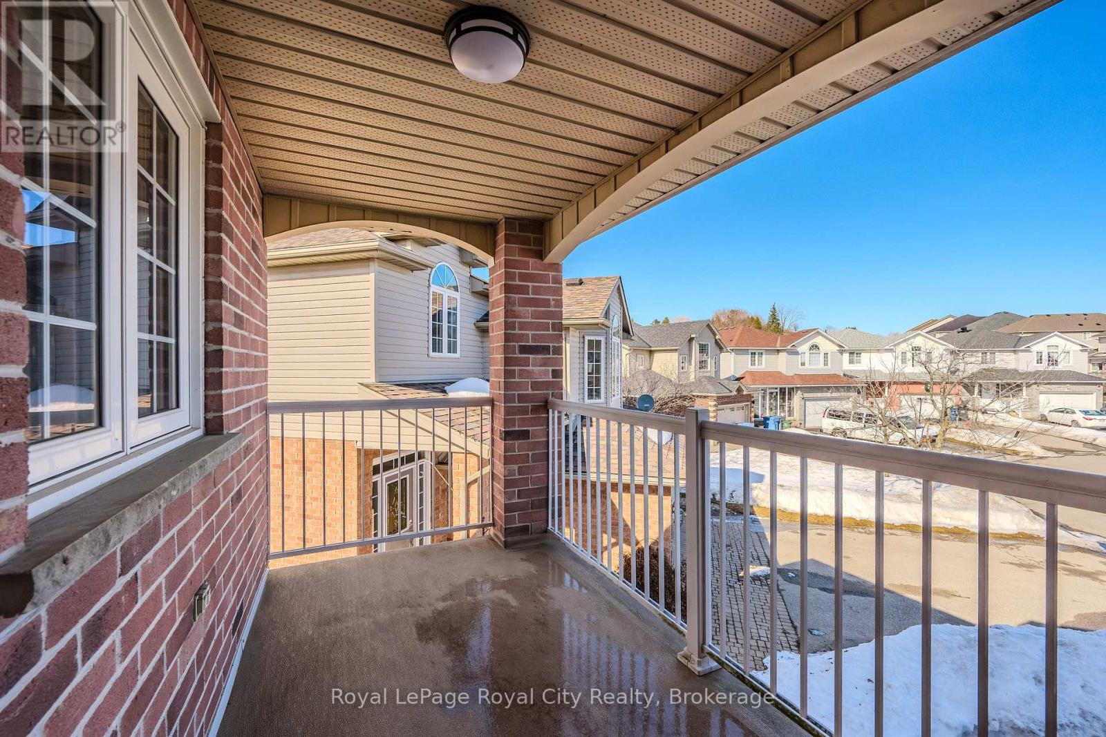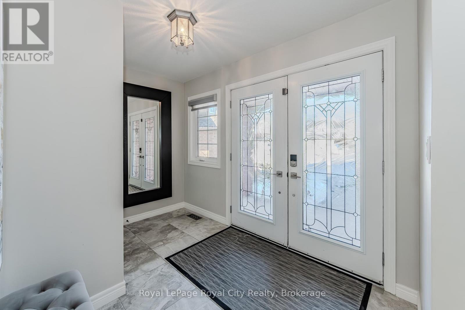 This exceptional 2,300+sqft home is nestled on a quiet cul-de-sac and backs onto scenic greenspace in one of Guelphs most desirable neighbourhoods. The meticulously maintained and tastefully renovated interior showcases an inviting open concept living and dining area that is beautifully enhanced by engineered hardwood flooring and large windows. The heart of the home is the elegant kitchen, featuring Quartz countertops, a spacious island with a breakfast bar, and sleek modern finishes- perfect for both casual meals and entertaining. Patio sliders from the kitchen lead to an expansive upper deck, ideal for enjoying morning coffee or evening barbeques while overlooking the lush, private backyard. The main level also offers a convenient office space and a 2 piece bathroom. A grand curved staircase ascends to the second level, hosting the stunning primary suite, three additional generously sized bedrooms (one with private access to the balcony), and a 4 piece main bathroom. The primary retreat boasts a walk-in closet and a luxurious 4 piece ensuite, featuring a glass-enclosed shower and a deep soaker tub. The fully finished walk-out basement is designed for relaxation and entertainment, offering a huge recreation room with an attractive gas fireplace, a laundry area, and a 3 piece bathroom. Enjoy direct access from the basement out to the patio area with beautiful gardens and a sprawling backyard. Additional features include a concrete driveway, a spacious 2-car garage, and impeccable curb appeal. Located close to parks, schools, shopping, and trails, this home is a rare find and a must see! (id:14494)