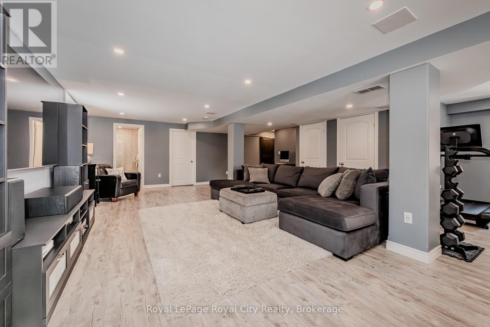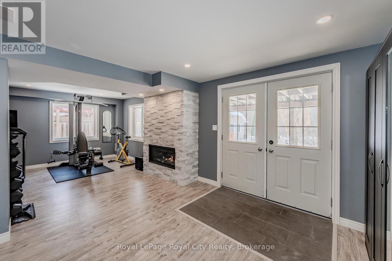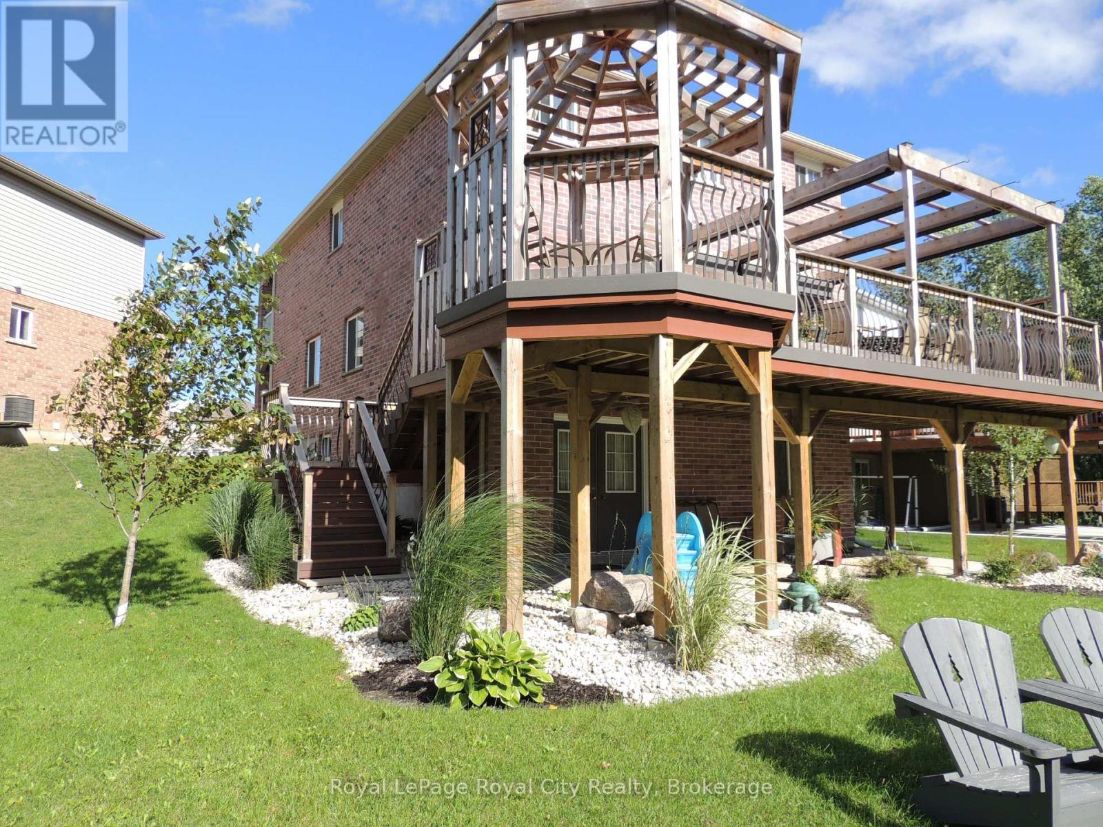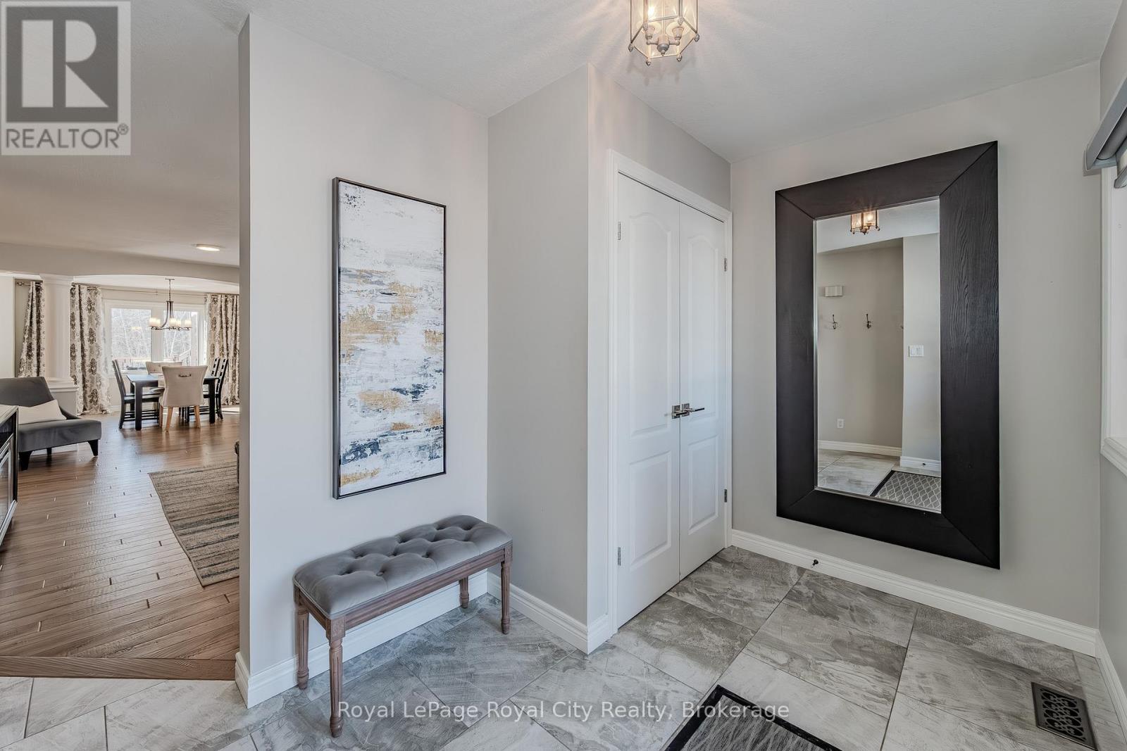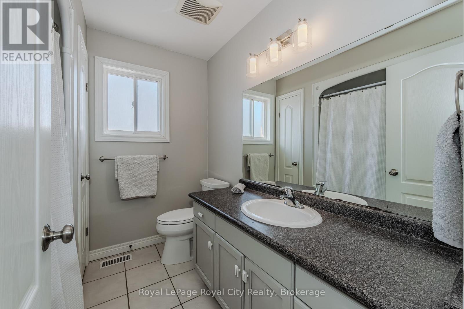This exceptional 2,300+sqft home is nestled on a quiet cul-de-sac and backs onto scenic greenspace in one of Guelphs most desirable neighbourhoods. The meticulously maintained and tastefully renovated interior showcases an inviting open concept living and dining area that is beautifully enhanced by engineered hardwood flooring and large windows. The heart of the home is the elegant kitchen, featuring Quartz countertops, a spacious island with a breakfast bar, and sleek modern finishes- perfect for both casual meals and entertaining. Patio sliders from the kitchen lead to an expansive upper deck, ideal for enjoying morning coffee or evening barbeques while overlooking the lush, private backyard. The main level also offers a convenient office space and a 2 piece bathroom. A grand curved staircase ascends to the second level, hosting the stunning primary suite, three additional generously sized bedrooms (one with private access to the balcony), and a 4 piece main bathroom. The primary retreat boasts a walk-in closet and a luxurious 4 piece ensuite, featuring a glass-enclosed shower and a deep soaker tub. The fully finished walk-out basement is designed for relaxation and entertainment, offering a huge recreation room with an attractive gas fireplace, a laundry area, and a 3 piece bathroom. Enjoy direct access from the basement out to the patio area with beautiful gardens and a sprawling backyard. Additional features include a concrete driveway, a spacious 2-car garage, and impeccable curb appeal. Located close to parks, schools, shopping, and trails, this home is a rare find and a must see! (id:14494)