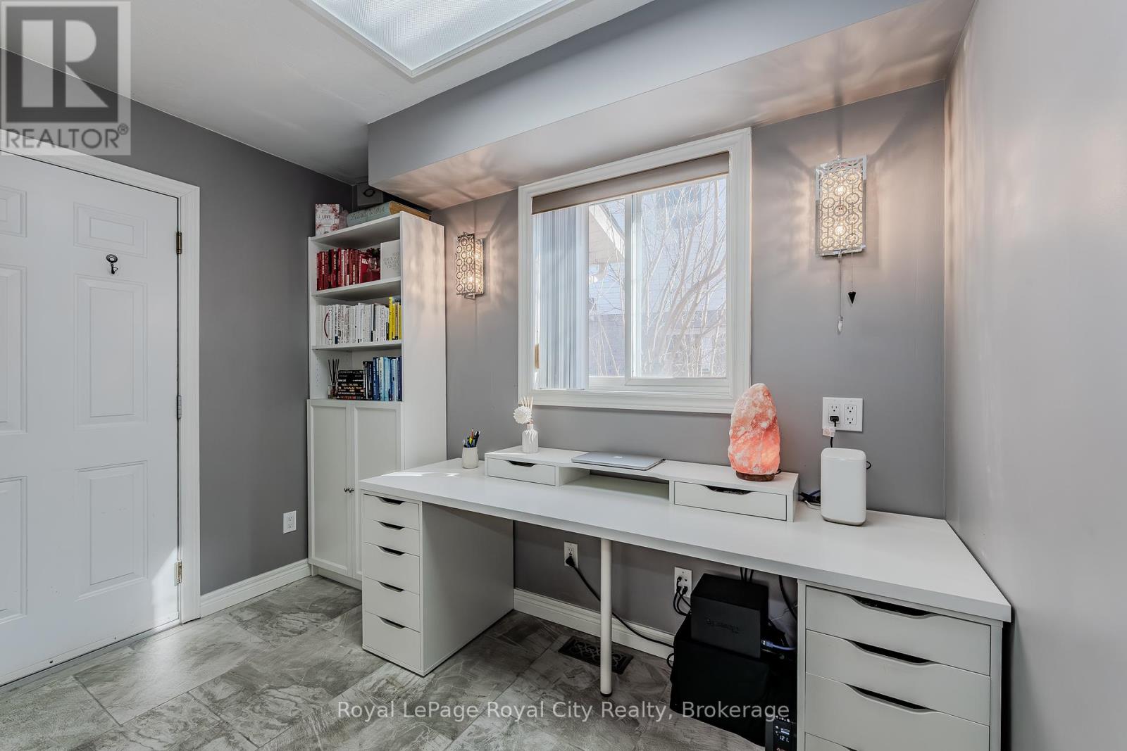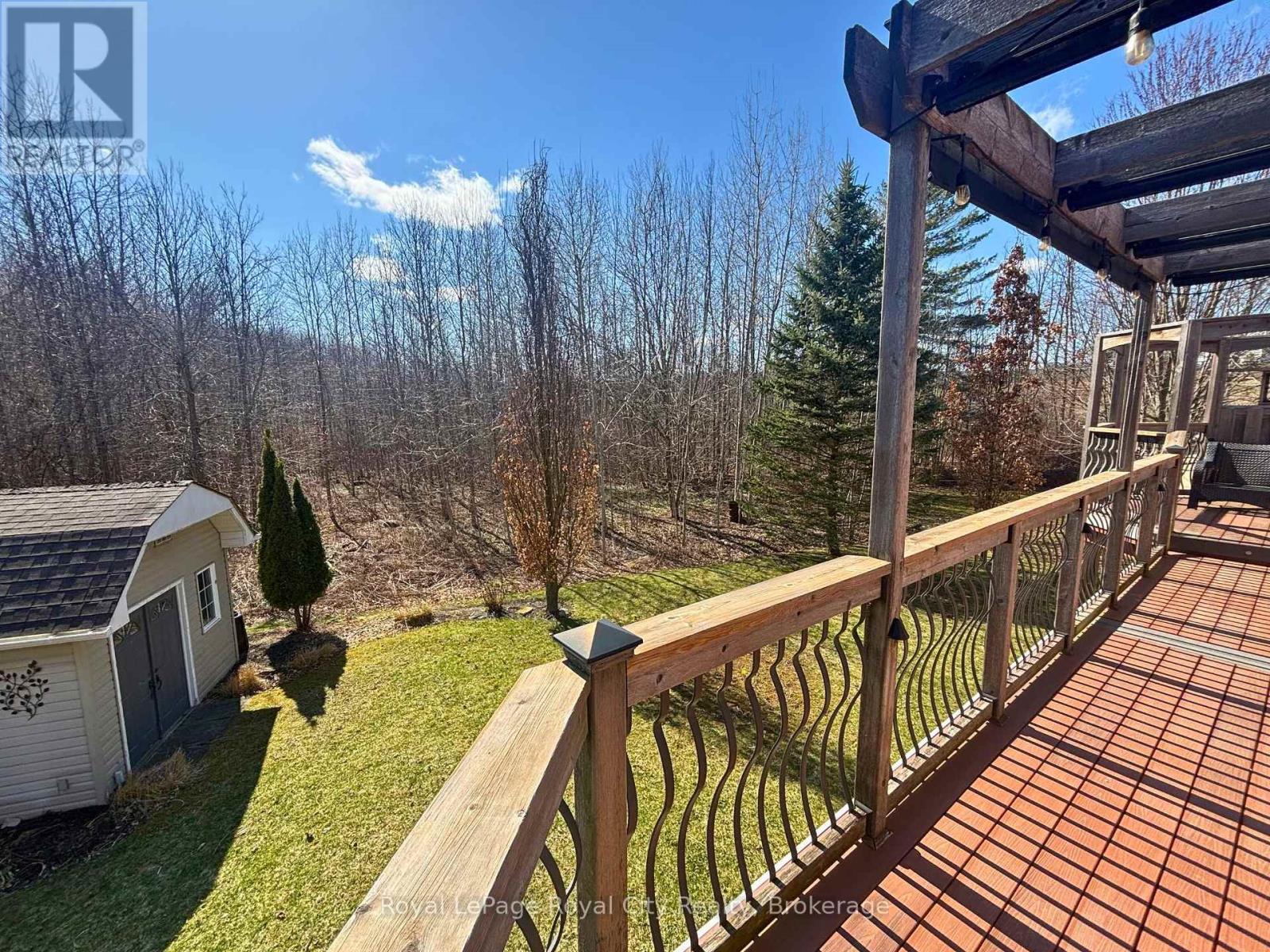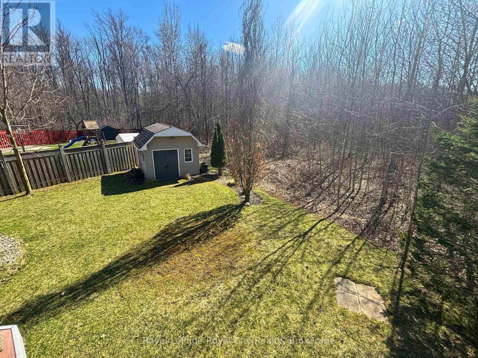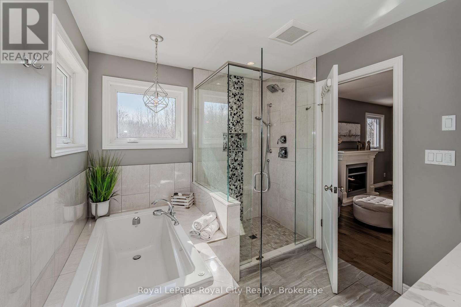 This exceptional 2,300+sqft home is nestled on a quiet cul-de-sac and backs onto scenic greenspace in one of Guelphs most desirable neighbourhoods. The meticulously maintained and tastefully renovated interior showcases an inviting open concept living and dining area that is beautifully enhanced by engineered hardwood flooring and large windows. The heart of the home is the elegant kitchen, featuring Quartz countertops, a spacious island with a breakfast bar, and sleek modern finishes- perfect for both casual meals and entertaining. Patio sliders from the kitchen lead to an expansive upper deck, ideal for enjoying morning coffee or evening barbeques while overlooking the lush, private backyard. The main level also offers a convenient office space and a 2 piece bathroom. A grand curved staircase ascends to the second level, hosting the stunning primary suite, three additional generously sized bedrooms (one with private access to the balcony), and a 4 piece main bathroom. The primary retreat boasts a walk-in closet and a luxurious 4 piece ensuite, featuring a glass-enclosed shower and a deep soaker tub. The fully finished walk-out basement is designed for relaxation and entertainment, offering a huge recreation room with an attractive gas fireplace, a laundry area, and a 3 piece bathroom. Enjoy direct access from the basement out to the patio area with beautiful gardens and a sprawling backyard. Additional features include a concrete driveway, a spacious 2-car garage, and impeccable curb appeal. Located close to parks, schools, shopping, and trails, this home is a rare find and a must see! (id:14494)