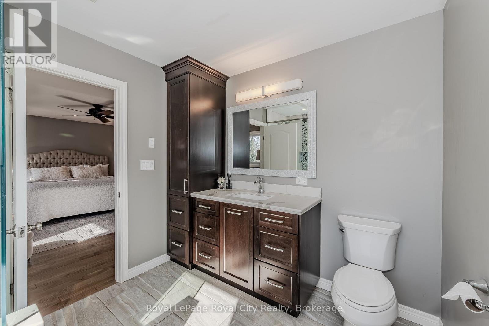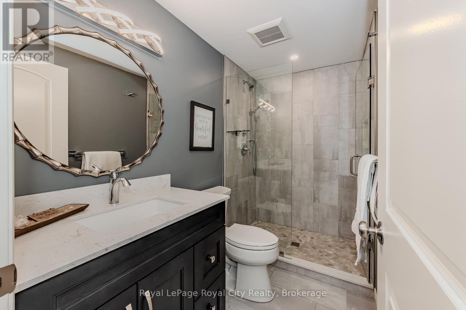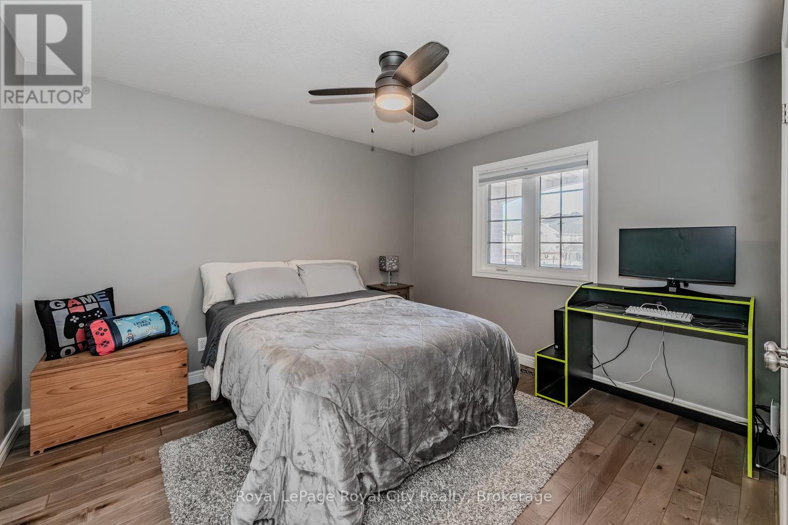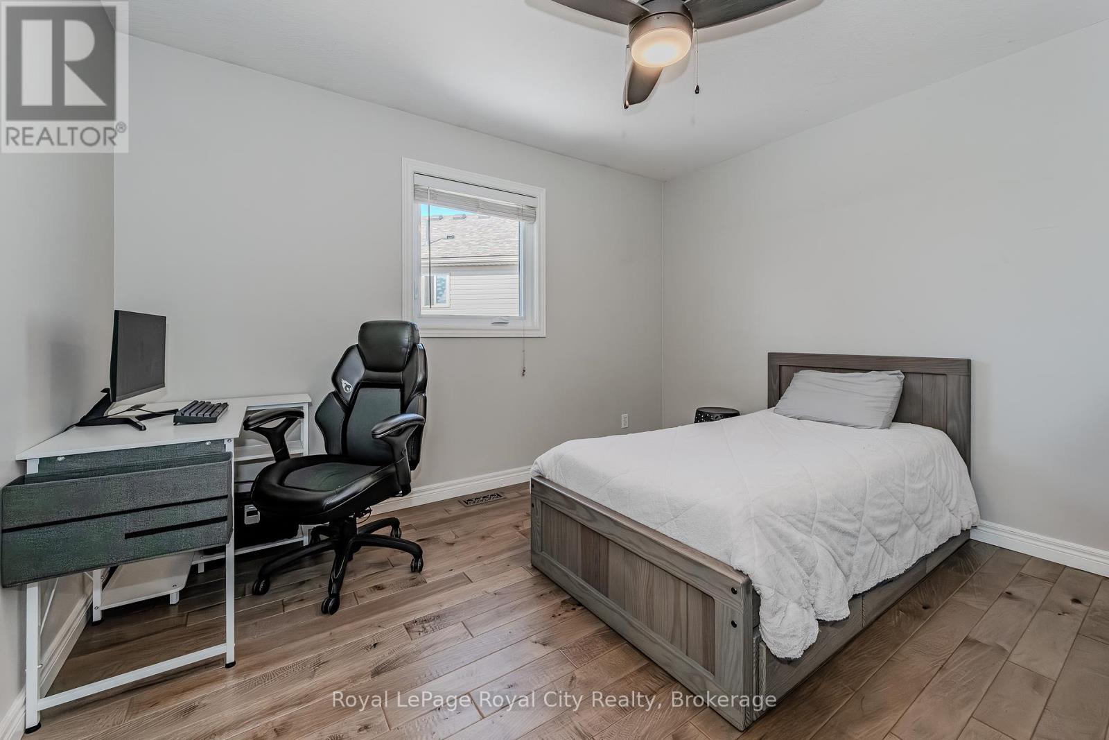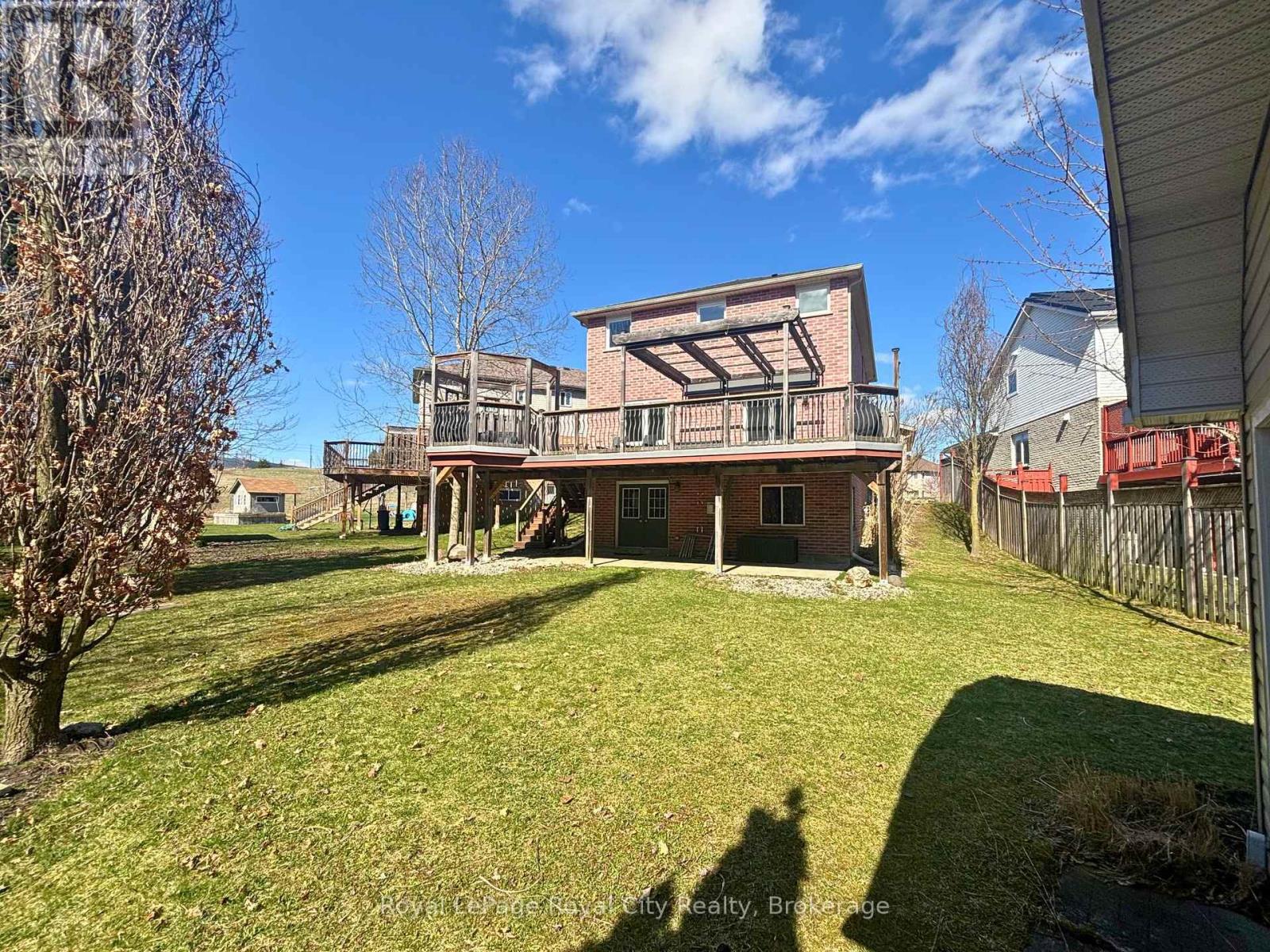 This exceptional 2,300+sqft home is nestled on a quiet cul-de-sac and backs onto scenic greenspace in one of Guelphs most desirable neighbourhoods. The meticulously maintained and tastefully renovated interior showcases an inviting open concept living and dining area that is beautifully enhanced by engineered hardwood flooring and large windows. The heart of the home is the elegant kitchen, featuring Quartz countertops, a spacious island with a breakfast bar, and sleek modern finishes- perfect for both casual meals and entertaining. Patio sliders from the kitchen lead to an expansive upper deck, ideal for enjoying morning coffee or evening barbeques while overlooking the lush, private backyard. The main level also offers a convenient office space and a 2 piece bathroom. A grand curved staircase ascends to the second level, hosting the stunning primary suite, three additional generously sized bedrooms (one with private access to the balcony), and a 4 piece main bathroom. The primary retreat boasts a walk-in closet and a luxurious 4 piece ensuite, featuring a glass-enclosed shower and a deep soaker tub. The fully finished walk-out basement is designed for relaxation and entertainment, offering a huge recreation room with an attractive gas fireplace, a laundry area, and a 3 piece bathroom. Enjoy direct access from the basement out to the patio area with beautiful gardens and a sprawling backyard. Additional features include a concrete driveway, a spacious 2-car garage, and impeccable curb appeal. Located close to parks, schools, shopping, and trails, this home is a rare find and a must see! (id:14494)